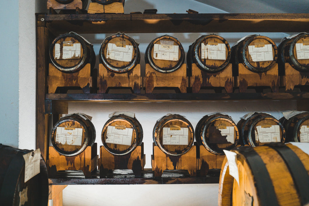 Partì con tre batterie: una di castagno, una di rovere, una di ciliegio, 6 botti ciascuna, fino ad arrivare, ad oggi, ad 8 batterie, per un totale di 69 botti, di cui 4 botti madre.