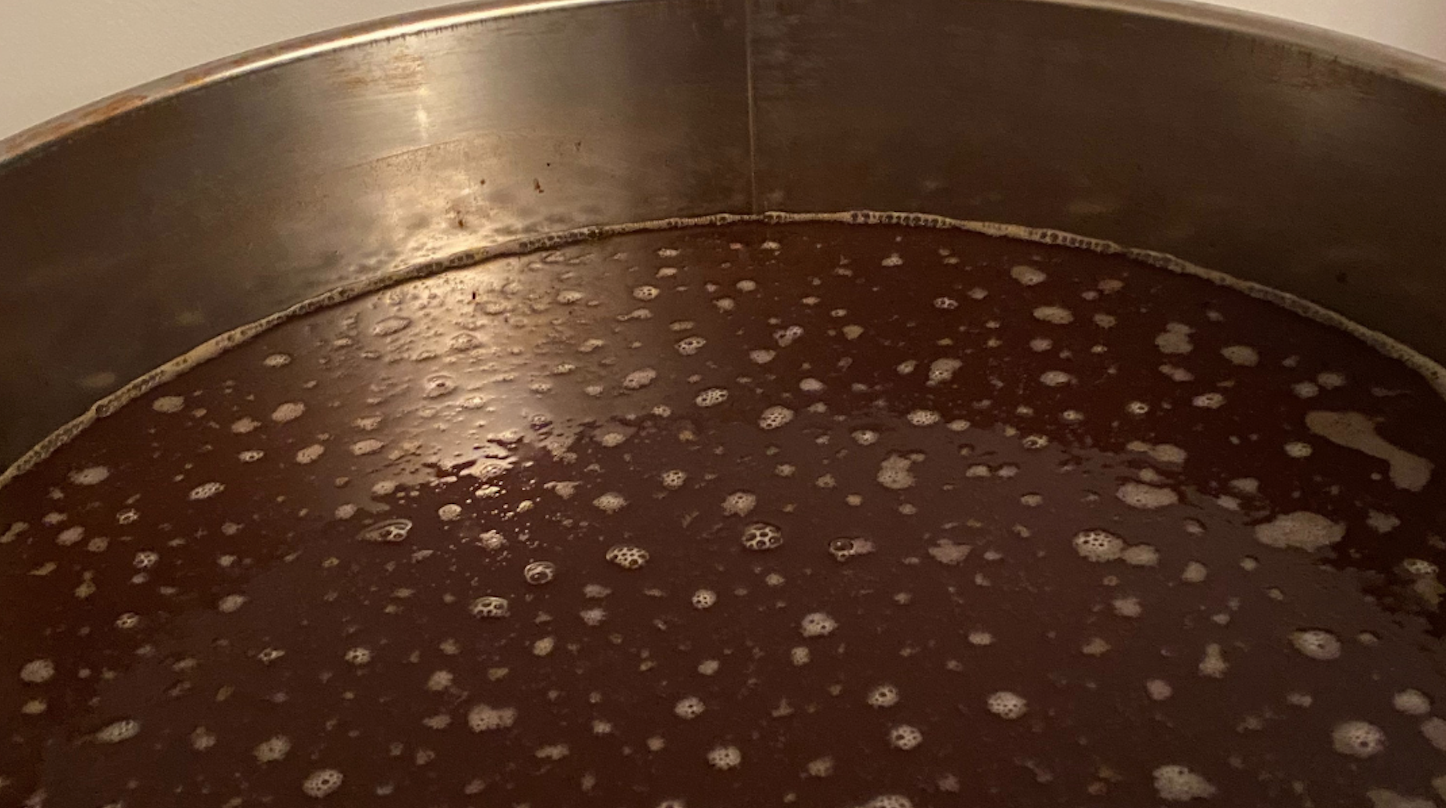 Il mosto crudo viene posto nel calderone in acciaio inox a cielo aperto ad una temperatura costante di 90 gradi centigradi per circa un giorno.L’innalzamento delle temperature agisce sulle sostanze solide in sospensione nel mosto, le quali tendono a dilatarsi ed a perdere peso e salgono verso la superficie sotto forma di schiuma. Ecco che avvengono le trasformazioni fisiche: con l’evaporazione, dove gran parte dell’acqua contenuta nel mosto si disperde in vapore acqueo, si incrementa la percentuale di zucchero e quindi anche la densità.